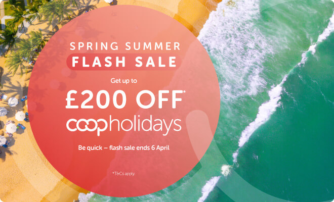 Simply book your Co-op Holidays flight + hotel package through the Co-op Travel website and your discount will be applied in the basket. But be quick – flash sale ends 6 April.